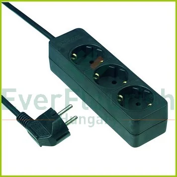 Hálózati elosztó 4-es 1,4m 3x1 vezetékkel fekete, kültéri IP44 12468 Gao