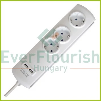 Hálózati elosztó 6-os kapcsolós fehér H05VV-F 3x1,5 1,4m-vezetékkel, 2db-USB-töltővel Gao 0398H