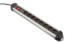 Hálózati elosztó 10-es 1,5m kapcsolós, túlfeszvédett alu ház 18350