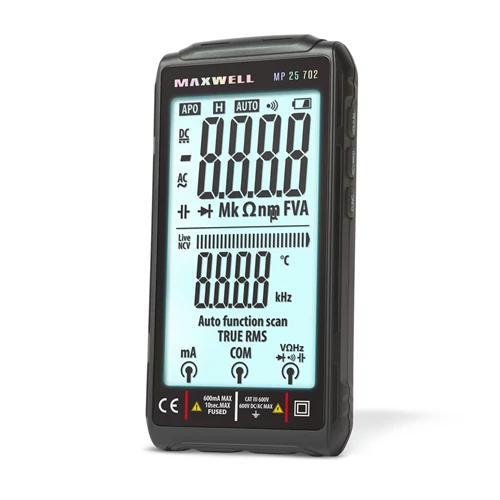 A teljesen automata multiméter előnye, hogy a mérés során a készülék automatikusan felismeri melyik funkcióra van szükség és abban végzi el a mérést. A nagyméretű kijelzőről könnyen és gyorsan leolvashatóak a mérési eredmények. A készülék hátoldalán található szenzor segítségével detektálhat feszültséget, anélkül, hogy a megbontaná a kábelezést. Ergonomikus készülékház, kompakt méret és könnyű kezelhetőség jellemzi. A praktikus, keményfalú hordozótáska megvédi a terméket a szállítások alkalmával. A beépített akkumulátor segítségével hosszú ideig használhatja a készüléket töltés nélkül, a Type-C porton keresztül gyorsan feltöltheti a készüléket, ezzel maximalizálva a készülék üzemidejét.