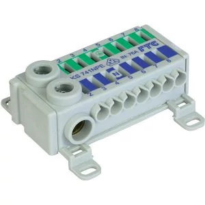 Elosztóblokk 2x25mm2 + 14x4mm2 zöld / kék KS741NPE FTG
