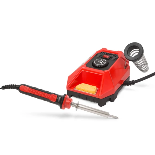 A Fahrenheit legújabb forrasztóállomásával könnyen és hatékonyan forraszthat elektronikai alkatrészeket. A kompakt méretének köszönhetően nem foglal sok helyet az asztalon, mégis rendelkezik minden olyan funkcióval amire szüksége lehet. A pákatartó és a páka hosszú kábele garantálja a kényelmes munkavégzést. A forrasztóállomásba épített óntartónak köszönhetően pedig mindig kéznél lehet a szükséges segédanyag. A műszer tetején lévő forgókapcsolóval precízen beállítható a forrasztási munkához szükséges hőmérséklet.