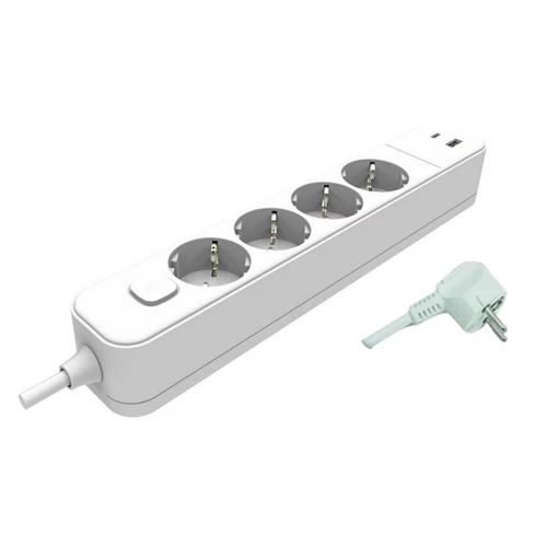 Hálózati elosztó 4-es, 2m vezetékkel kapcsolóval, fehér, USB-A és USB-C töltőaljzattal, H05VV-F 3x1,0mm2 EK42USB