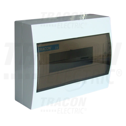 Kiselosztó falon kívüli átlátszó ajtó 12M IP42 fehér PE/N sín Tracon EDFK-12/1