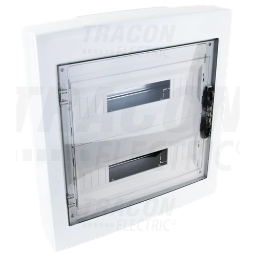 Kiselosztó süllyesztett átlátszó ajtóval, téglafalba, 2sor x18MOD (36MOD) IP42 fehér PE/N sín EDSS-18/2