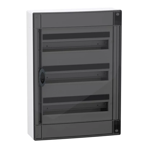 Kiselosztó EZ9 falon kívüli átlátszó füst ajtó 36M IP40 3 sor PE/N sín EZ9EUC312