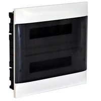 Kiselosztó süllyesztett 385x103x72mm átlátszó ajtóval 2x18 modul IP40 fehér PE/N sín 137157