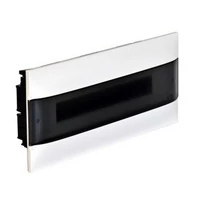 Kiselosztó süllyesztett 385x103x72mm átlátszó ajtóval 2x18 modul IP40 fehér PE/N sín 137157