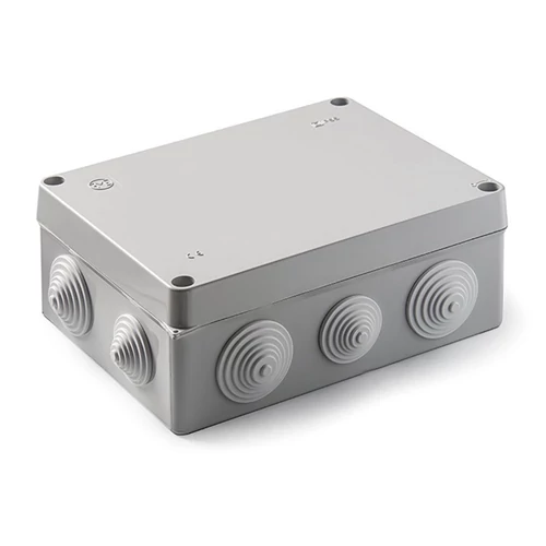 Kötődoboz 220x170x85, sima falú, műanyag csavarokkal, kihajtható tetővel, plombálható IP55 szürke RAL7035 3074