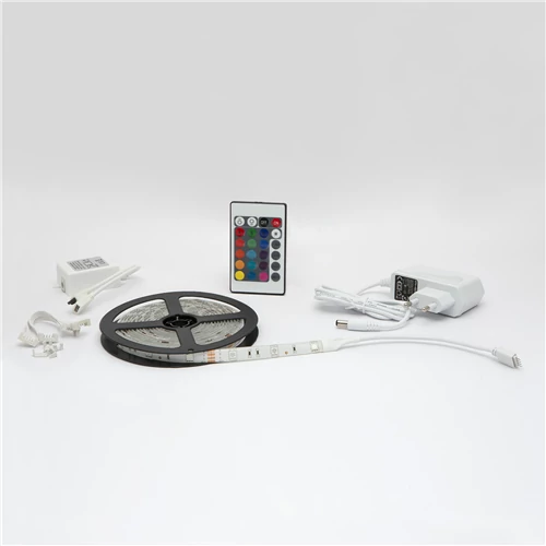 Led szalag szett RGB 7,2W/m, 420lm/m, 5m-hosszú szalaggal IP20 vezérlővel, adapterrel 12VDC / 2A 55849