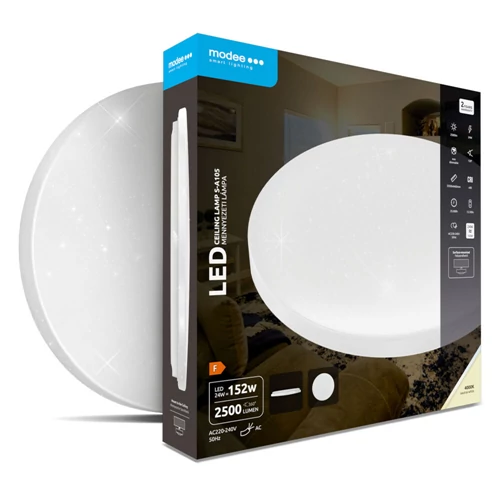 Ez a Modee felszerelhető mennyezeti lámpa egy modern és kiváló minőségű világítási választás, amely ideálisan alkalmazható otthonában vagy irodai környezetben. Az SMD LED technológia révén ez a lámpa energiahatékony és hosszú élettartammal bír, miközben kiemelkedő fényminőséget biztosít. Legfontosabb jellemzője, hogy 18 Watt teljesítménye mellett 1900 lumen fényáramot képes előidézni, mindezt vibrálásmentesen és homogén módon, 120°-os szögben. A színhőmérsékletet a búrát letekerve manuálisan tudjuk állítani, 2700-től egészen 6500 Kelvinig. Ez lehetővé teszi, hogy a fényt a hangulatához és tevékenységéhez igazítsa. Munka vagy tanulás során érdemesebb a hidegebb tónusokat (4000-6500K) választani, amelyek segítenek éberebbnek maradni, míg pihenéshez vagy vacsorához a melegebb fényt (4000K alatt) ajánljuk. A lámpa színvisszaadási indexe >80, így a környezetében lévő színek élethűen jelennek meg.